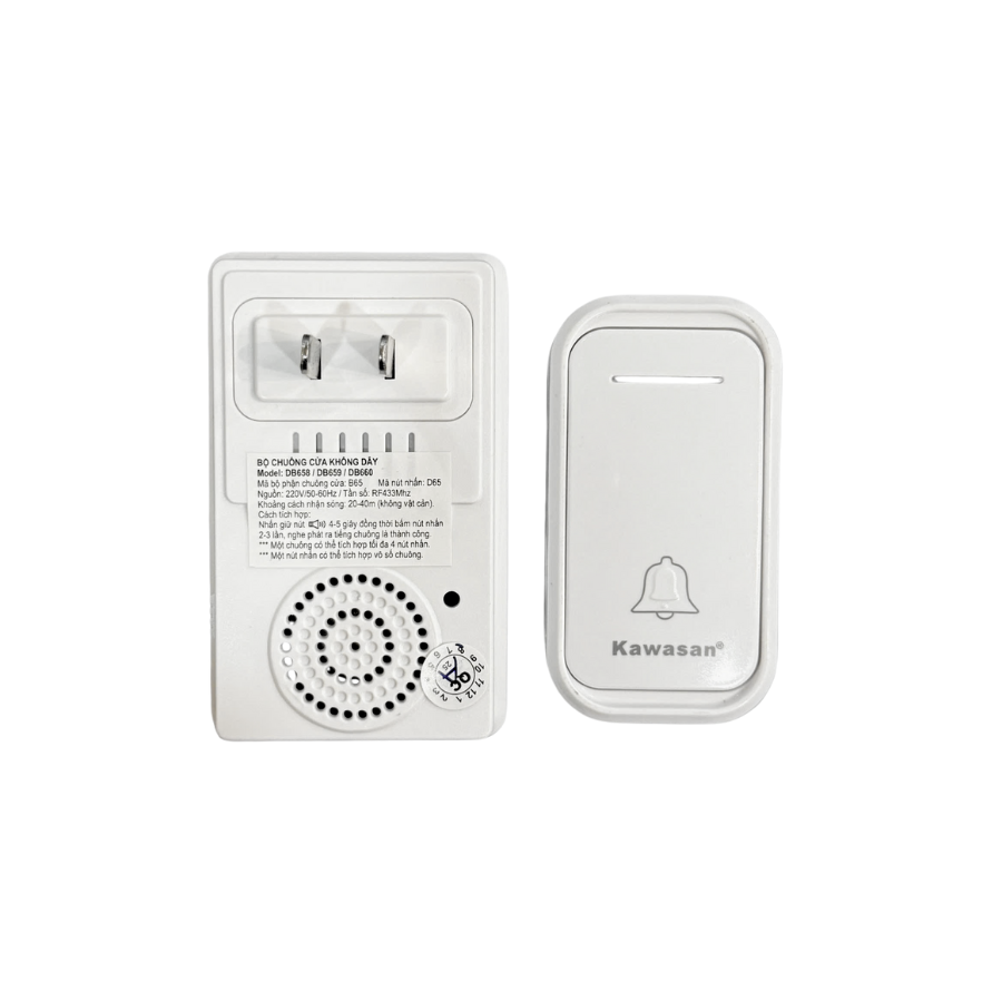 - Âm lượng chuông có thể tùy chỉnh cho phù hợp với nhu cầu của gia đình. Có ba mức để lựa chọn: Cao/trung bình/thấp. Chuông không dây Kawasan có đến 38 kiểu chuông được cài đặt sẵn cho bạn thỏa sức lựa chọn và thay đổi.